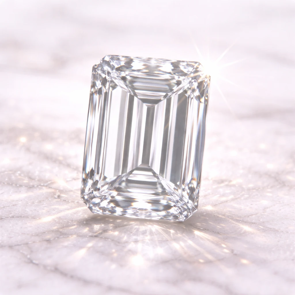 Emerald-shaped diamonds are characterized by their rectangular outline and step-cut facets. This diamond shape emphasizes clarity and elegance rather than sparkle, offering a refined, sophisticated look ideal for classic and vintage-inspired jewelry.