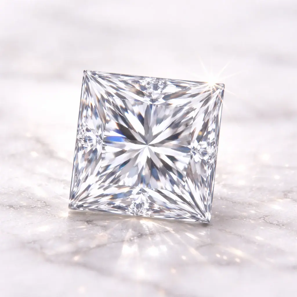 The princess cut diamond features a modern square outline with sharp corners and impressive brilliance. Known for its contemporary style and excellent light performance, it is one of the most sought-after diamond shapes after round.
