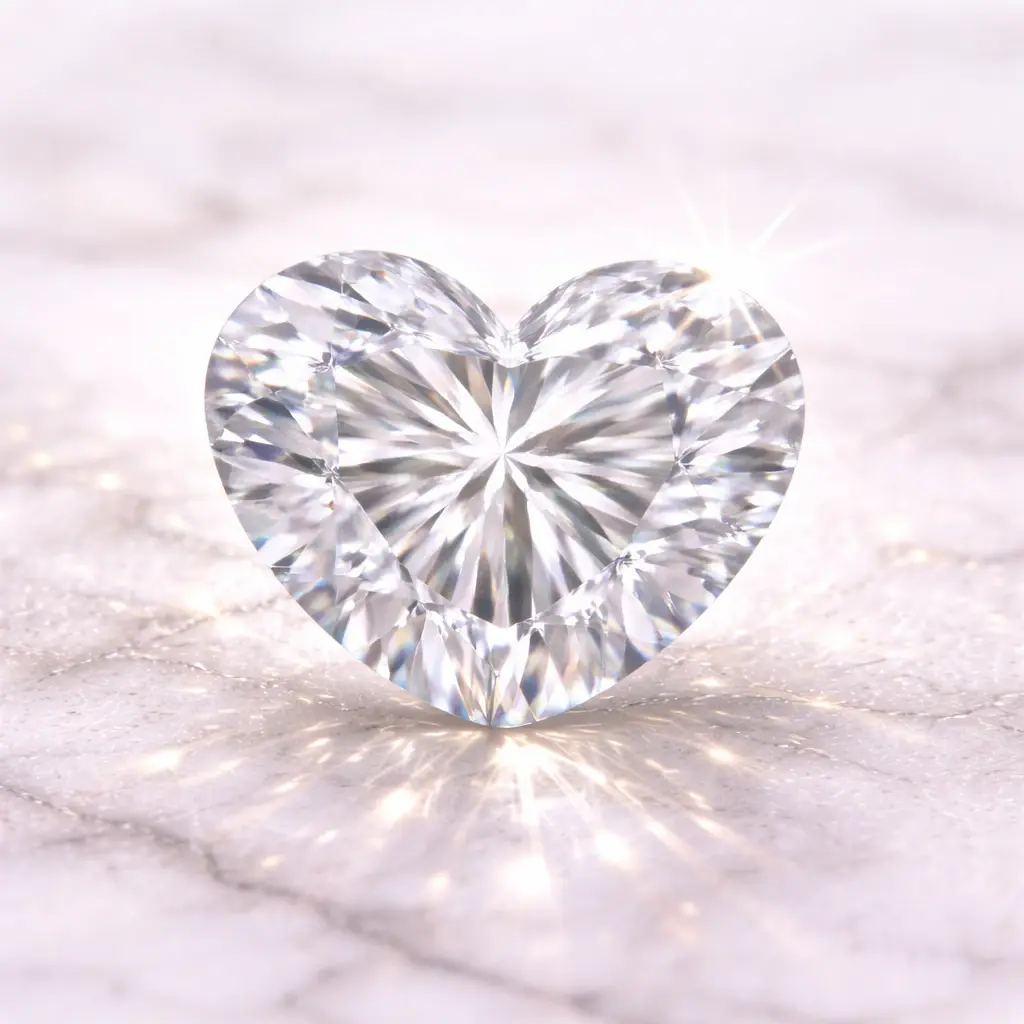 Heart-shaped diamonds symbolize love and romance. With a distinctive cleft at the top and rounded curves, this shape requires precise cutting to achieve symmetry, brilliance, and a well-defined heart silhouette.