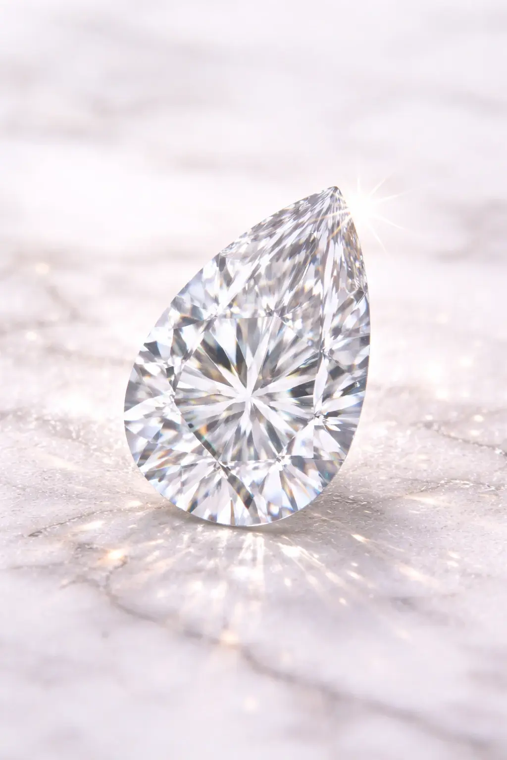 Pear-shaped diamonds combine the brilliance of a round diamond with the elegance of a marquise cut. Featuring one rounded end and one pointed tip, this diamond shape is versatile, flattering, and popular in drop earrings and statement rings.