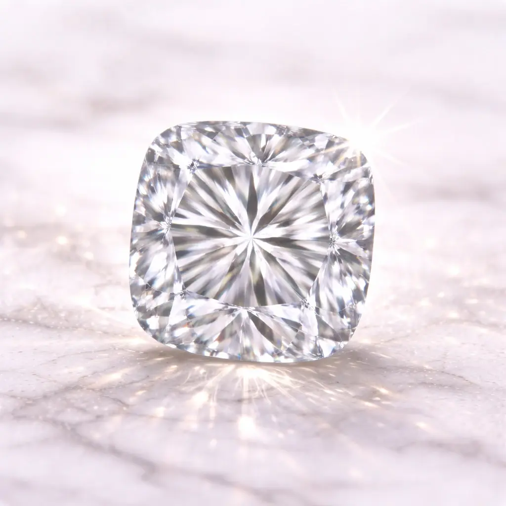 The cushion cut diamond features a softly square or rectangular shape with rounded corners and larger facets. Known for its pillow-like silhouette and romantic appeal, this diamond shape offers a blend of vintage charm and modern brilliance. Cushion diamonds are admired for their depth, fire, and ability to showcase exceptional sparkle while maintaining a timeless, elegant look.
