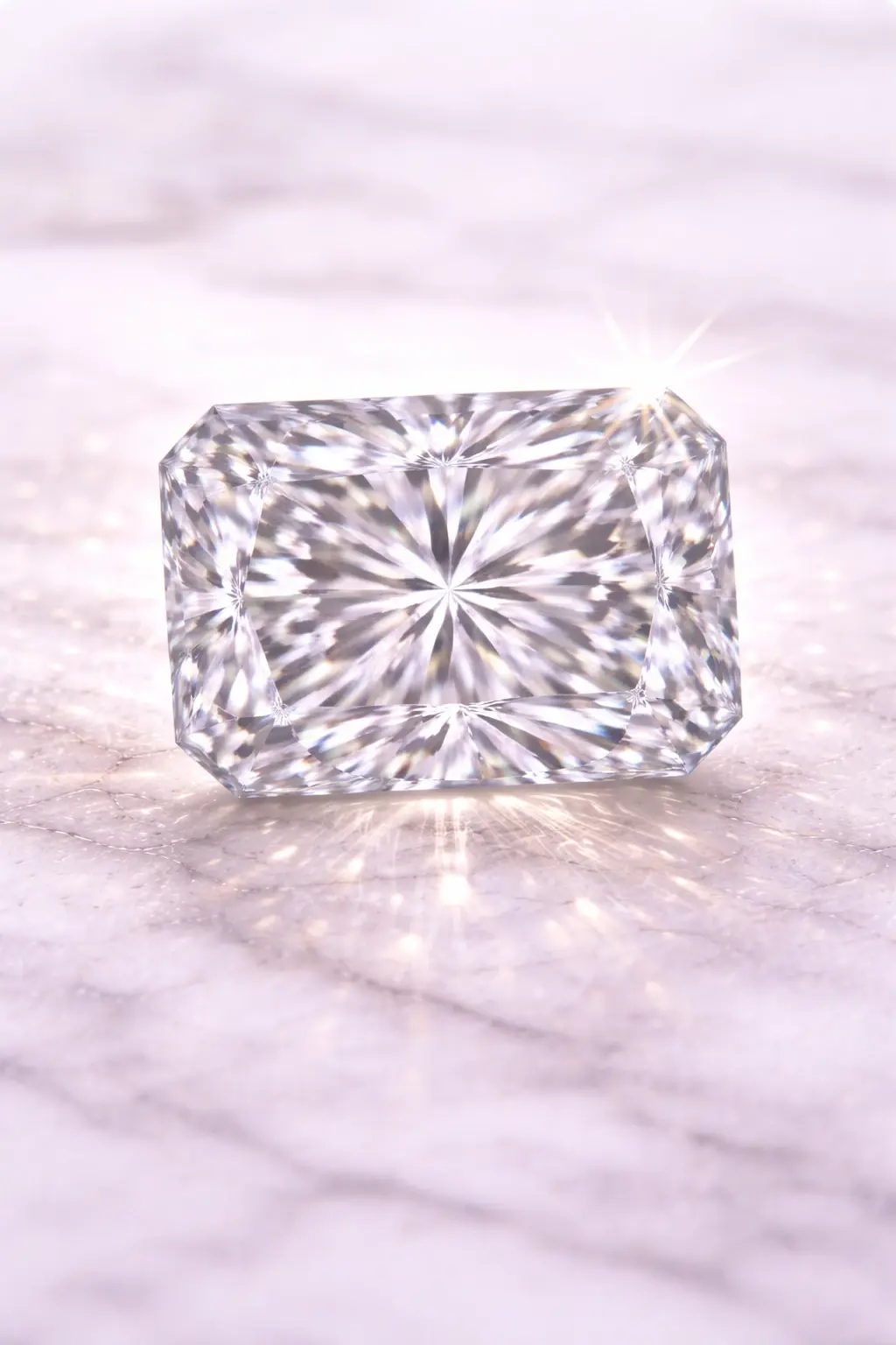 The radiant cut diamond features a rectangular or square shape with cropped corners and brilliant-cut facets. Known for its bold geometry and intense sparkle, this diamond shape combines the elegance of an emerald cut with the brilliance of a round cut. Radiant diamonds are celebrated for their vibrant fire, durability, and contemporary, statement-making appearance.